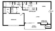 1 Dormitorio, 1 Baño, 665 pies²Disponible AhoraGalería del Modelo