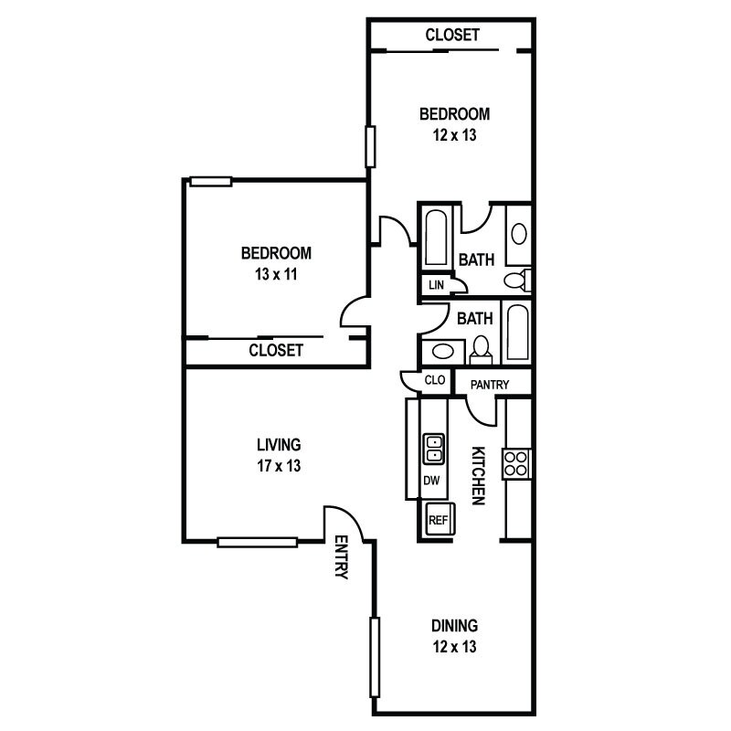 Modelo de apartamento: C13 Dormitorios, 2 Baños, 1307 sq ftNo Disponible![]()