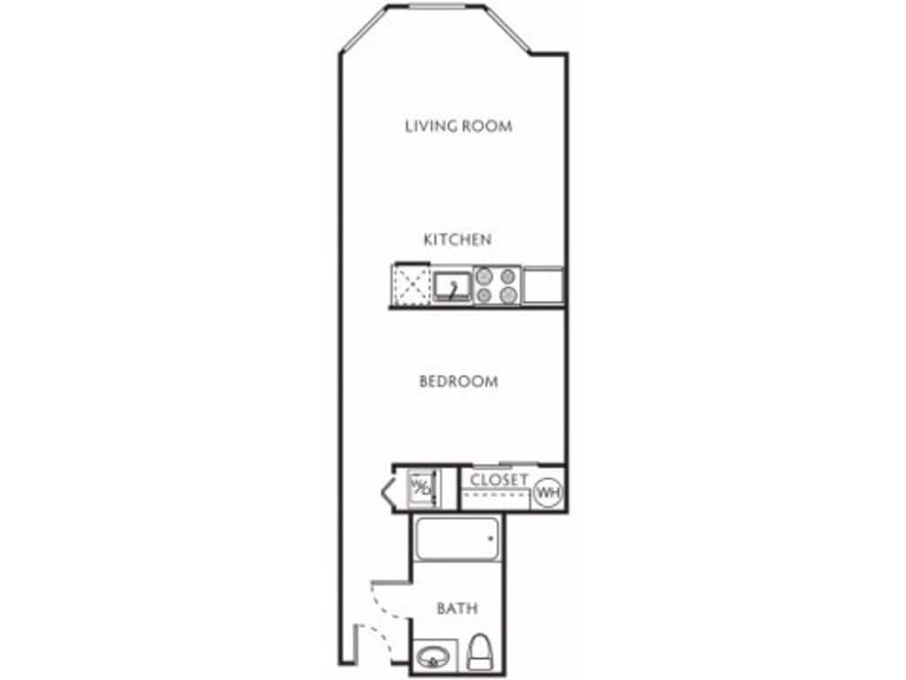 Modelo de apartamento: 1x1 A$1,1991 Dormitorio, 1 Baño, 389 sq ftDisponible Ahora![]()