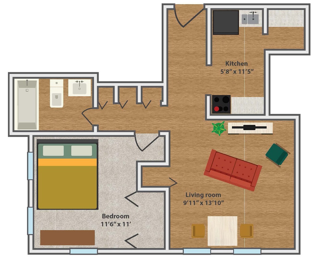 S.1 C - Imagen 6 Unidad de apartamento: 545-112RModelo de apartamento: S.1 C$930Estudio, 1 Baño, 544 sq ftDisponible Ahora1 Dormitorio