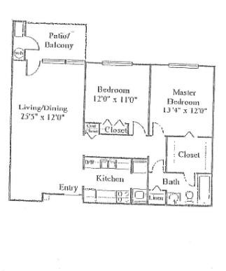 Modelo de apartamento: Two Bedroom One Bath2 Dormitorios, 1 Baño, 804-954 sq ftNo Disponible![]()