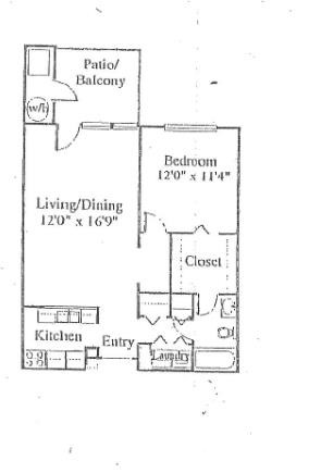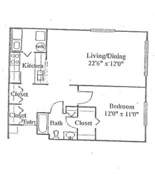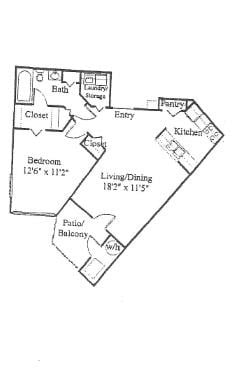 Modelo de apartamento: One Bed One Bath1 Dormitorio, 1 Baño, 632-745 sq ftNo Disponible![]()