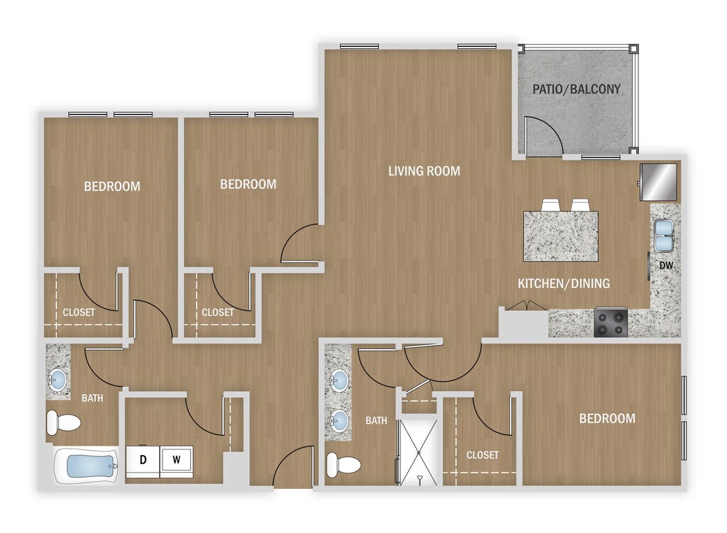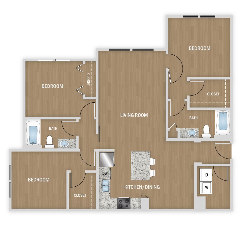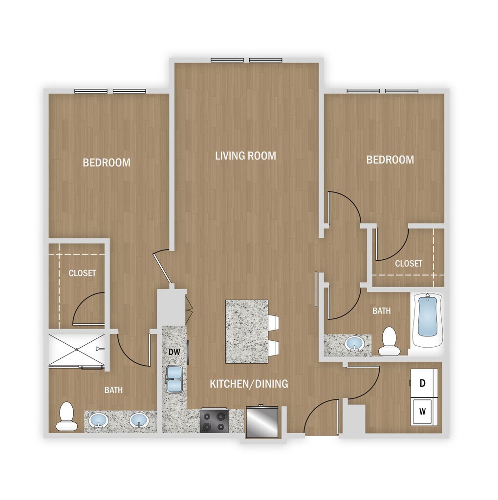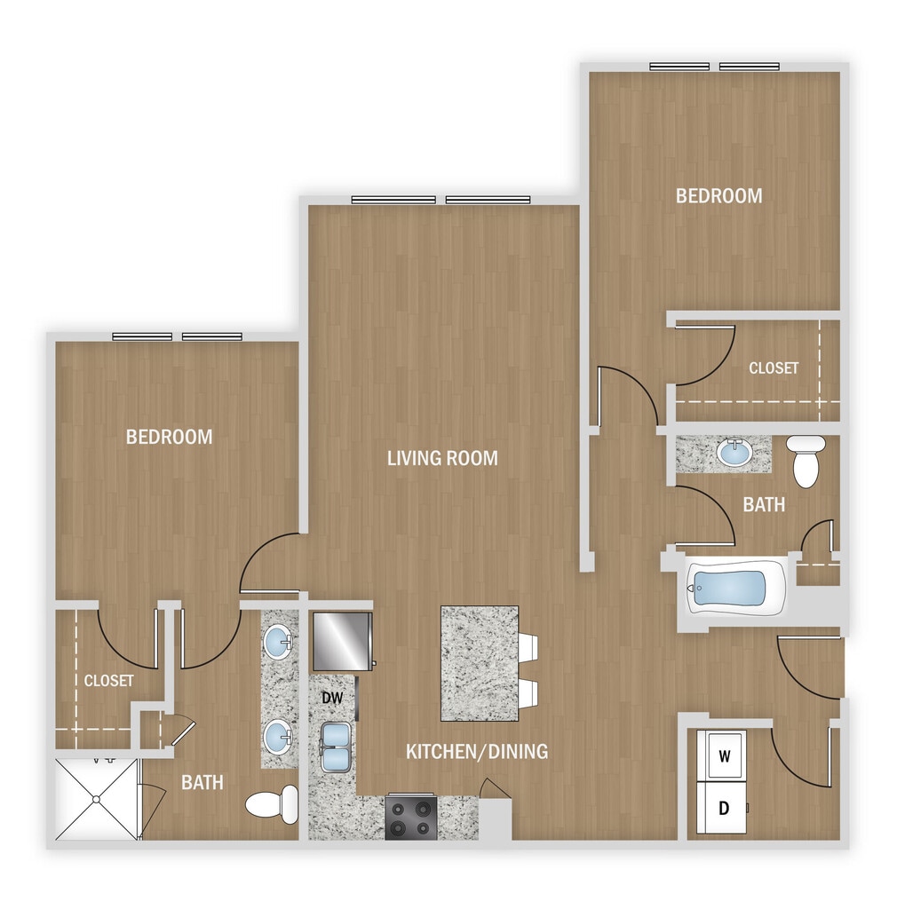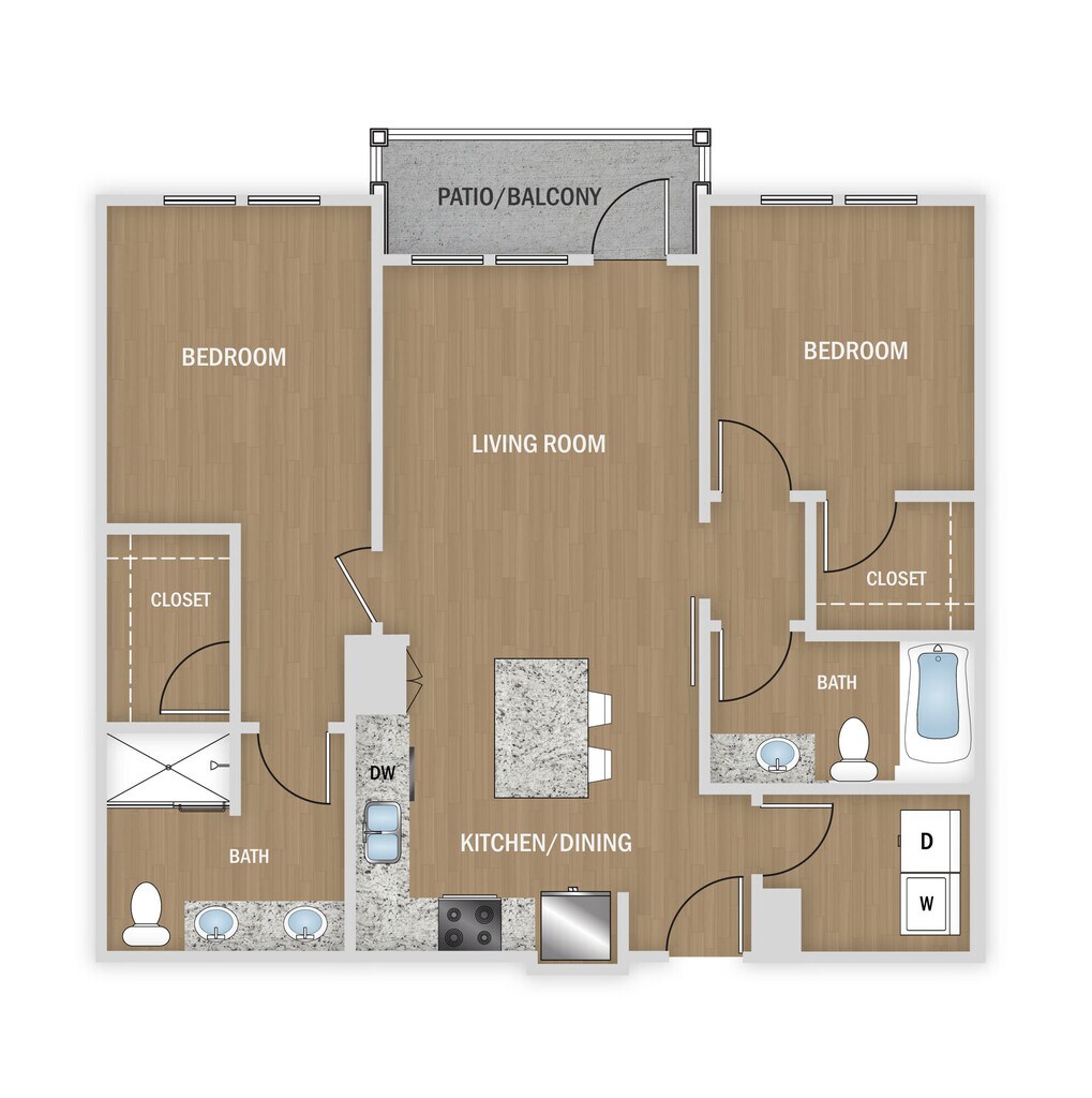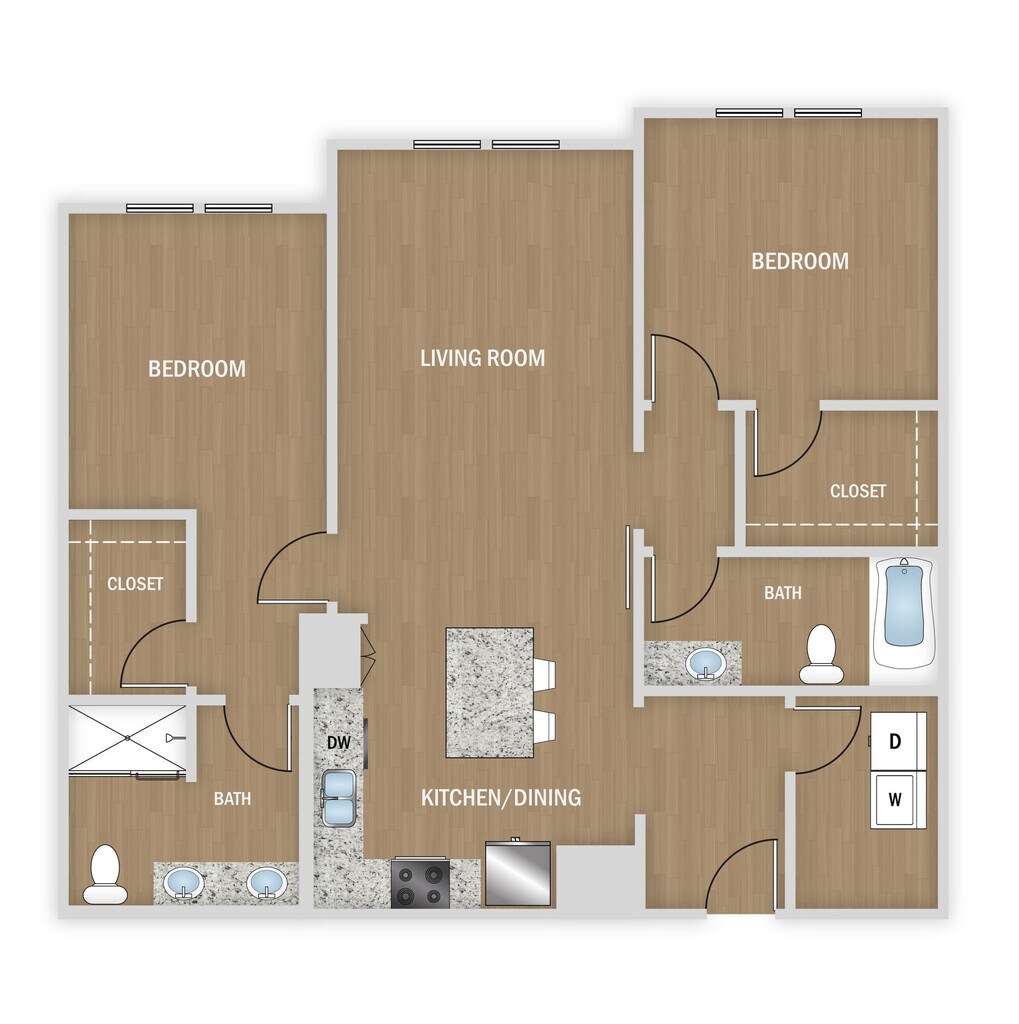 Modelo de apartamento: A2SDesde $1,6251 Dormitorio, 1 Baño, 886 sq ftDisponible Ahora![]()
