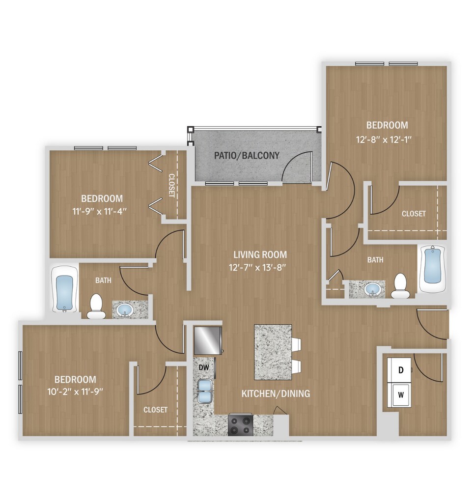 Modelo de apartamento: A3$1,6491 Dormitorio, 1 Baño, 739 sq ftDisponible Ahora![]()
