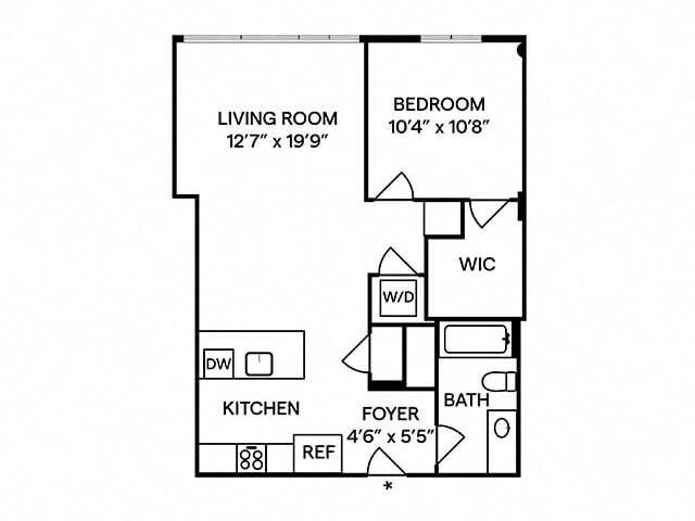Modelo de apartamento: A4Desde $2,3771 Dormitorio, 1 Baño, 613 sq ftDisponible Ahora![]()
