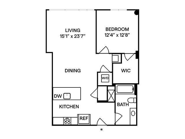 Modelo de apartamento: A7Desde $2,3631 Dormitorio, 1 Baño, 674-806 sq ftDisponible Ahora![]()