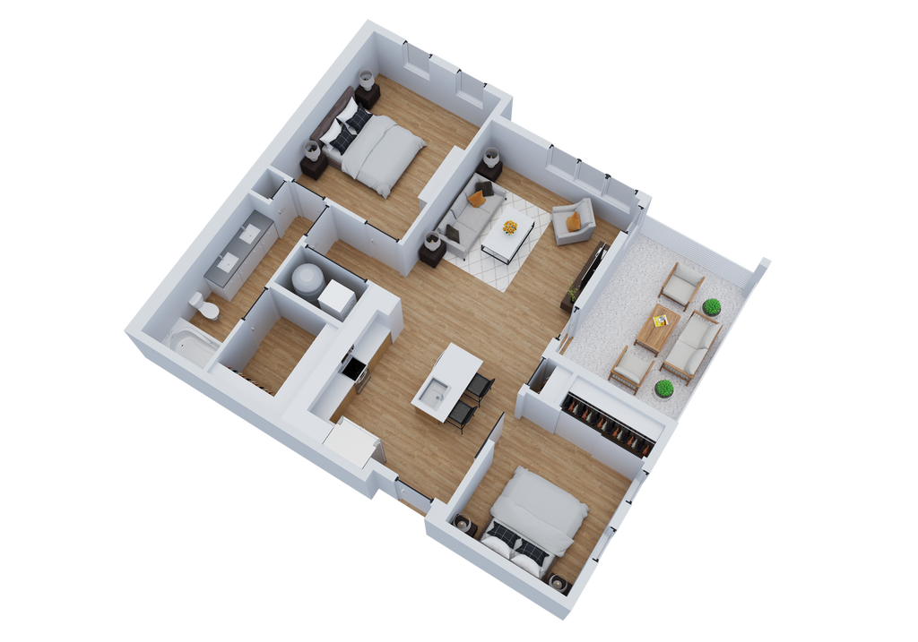 1 Dormitorio, 1 Baño, 702-720 pies²Disponible AhoraGalería del Modelo