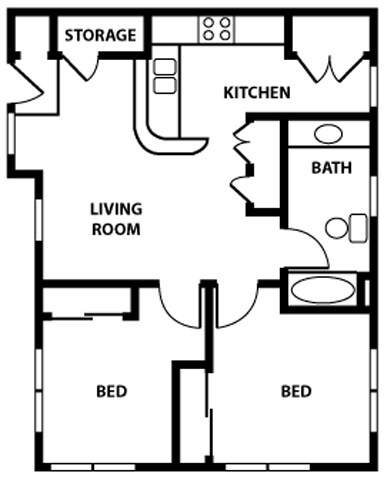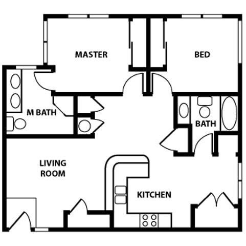 2 Dormitorios, 2 Baños, 950 pies²El más grandeEsta opción tiene las unidades más grandes para este modeloGalería del Modelo
