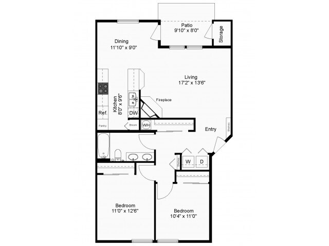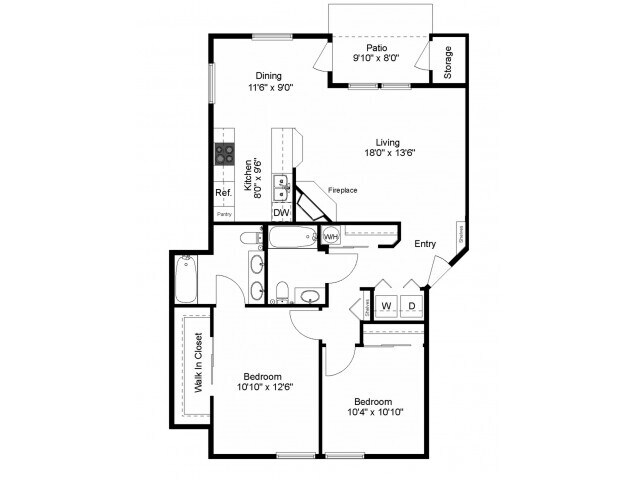 Modelo de apartamento: Larch2 Dormitorios, 2 Baños, 1018 sq ftDisponible Ahora![]()