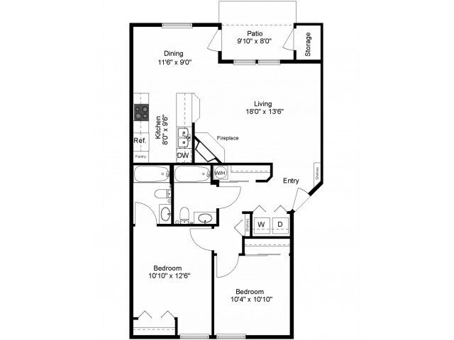 Modelo de apartamento: Fir2 Dormitorios, 1 Baño, 1018 sq ftDisponible Ahora![]()