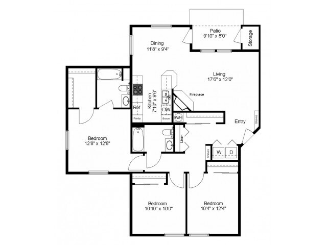 Modelo de apartamento: Sequoia3 Dormitorios, 2 Baños, 1306 sq ftDisponible Ahora![]()