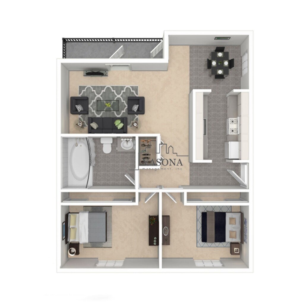 2 Dormitorios, 1 Baño, 696-840 pies²Disponible January 19, 2026Galería del Modelo