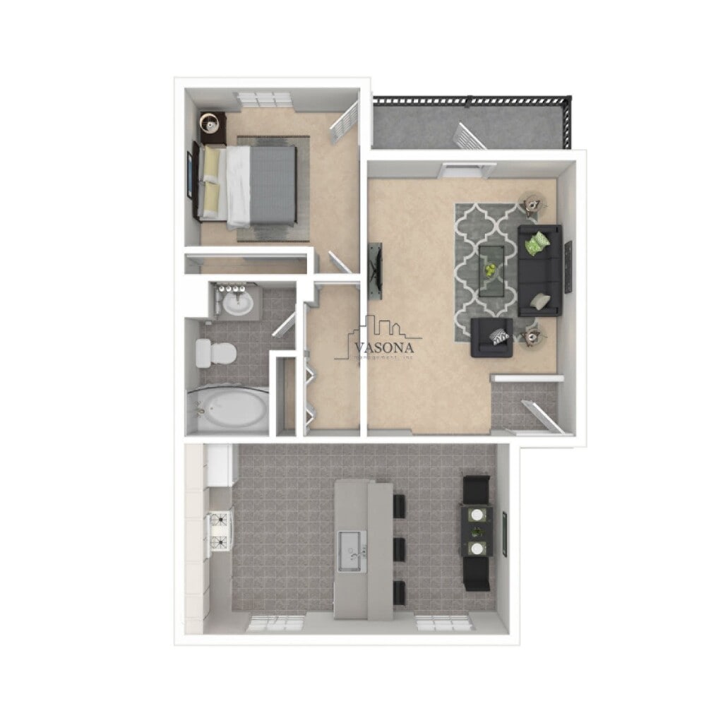 1 Dormitorio, 1 Baño, 527 pies²Disponible AhoraGalería del Modelo