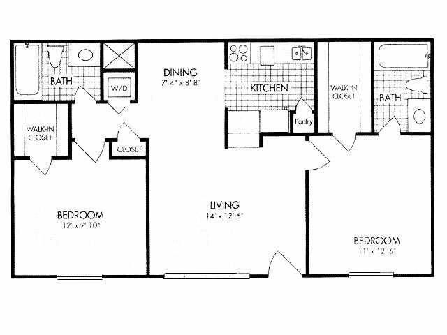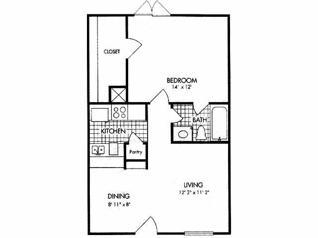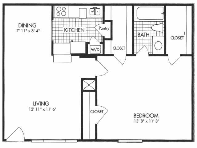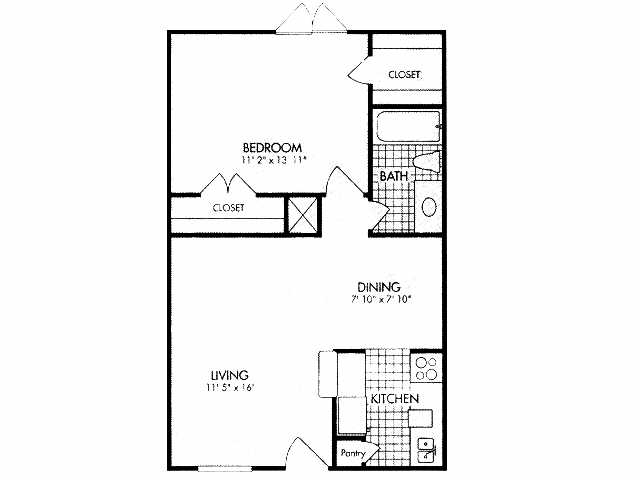 Modelo de apartamento: 1x1 664 SF1 Dormitorio, 1 Baño, 664 sq ftNo Disponible![]()