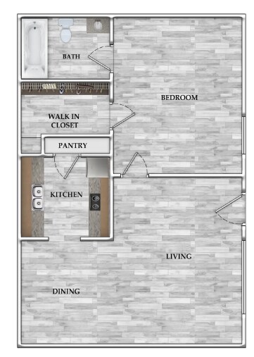 Modelo de apartamento: 1x1 631 SF1 Dormitorio, 1 Baño, 631 sq ftDisponible Ahora![]()