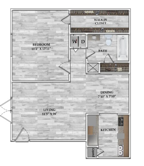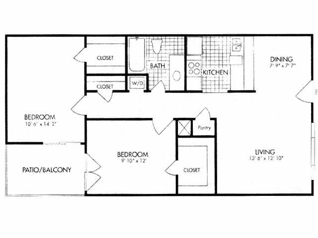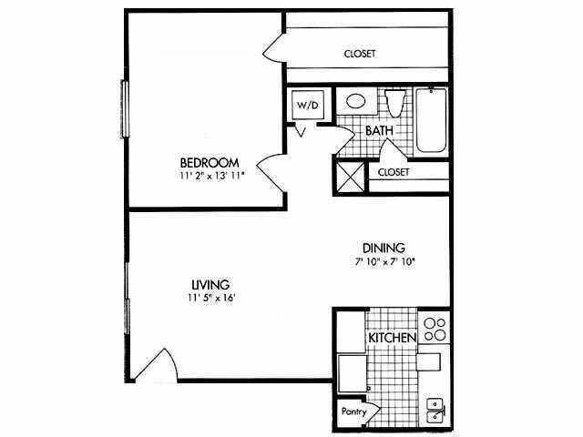 Modelo de apartamento: 1x1 643 SF1 Dormitorio, 1 Baño, 643 sq ftDisponible Ahora![]()