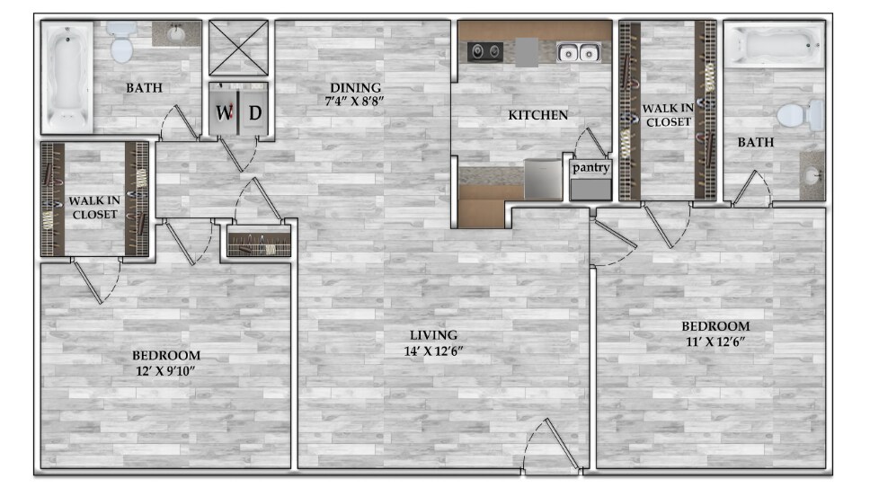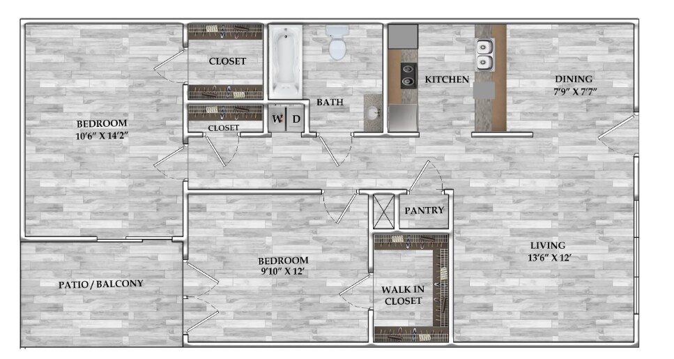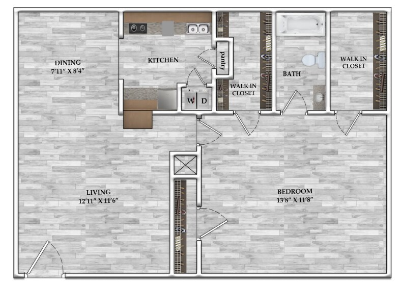 Modelo de apartamento: 1x1 617 SF1 Dormitorio, 1 Baño, 617 sq ftDisponible Ahora![]()