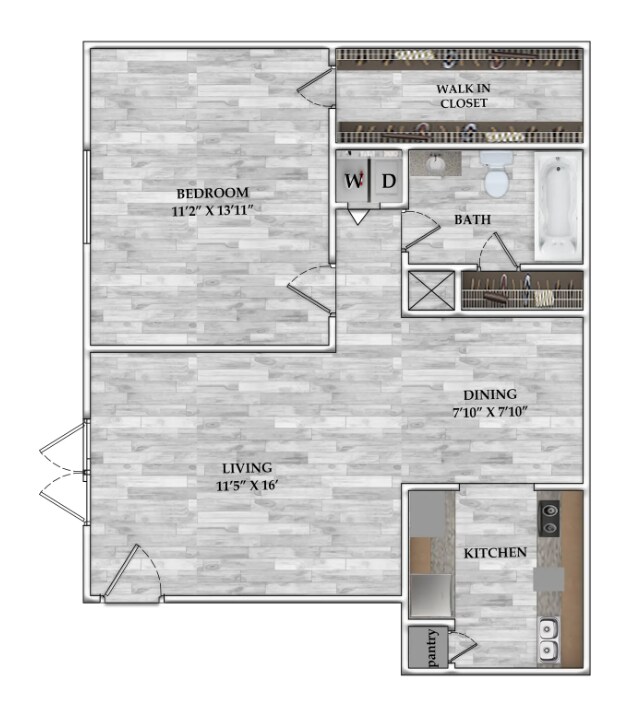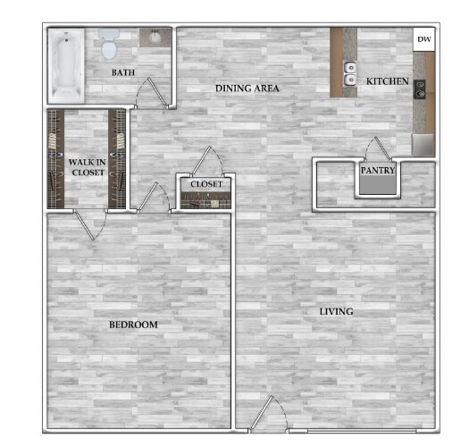 Modelo de apartamento: 1x1 527 SF1 Dormitorio, 1 Baño, 527 sq ftDisponible December 16, 2025![]()