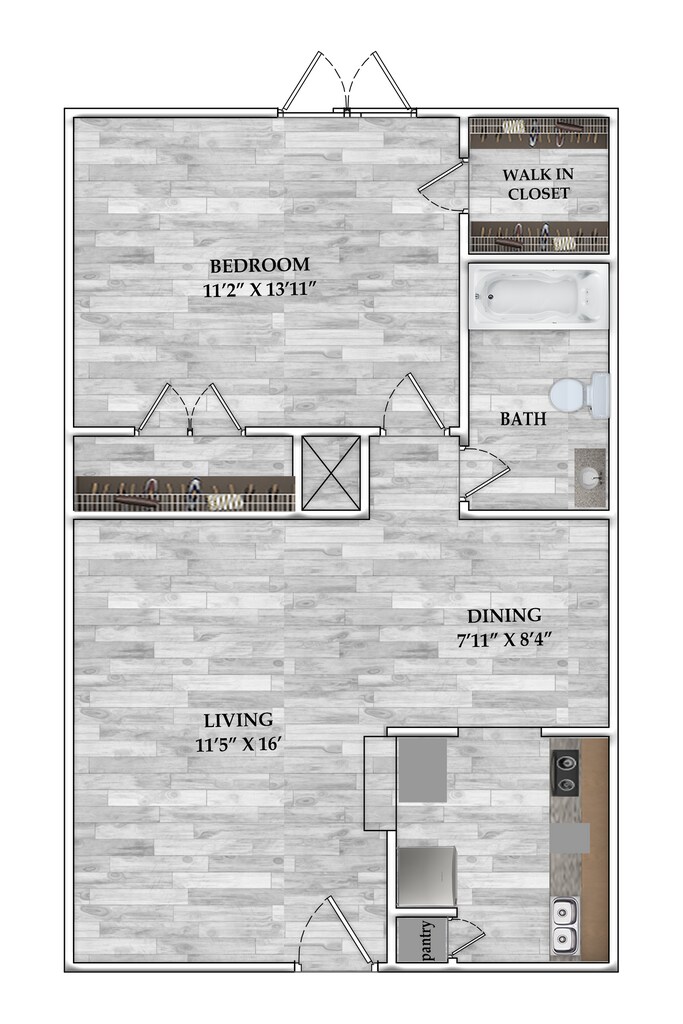 1 Dormitorio, 1 Baño, 631 pies²Disponible AhoraGalería del Modelo