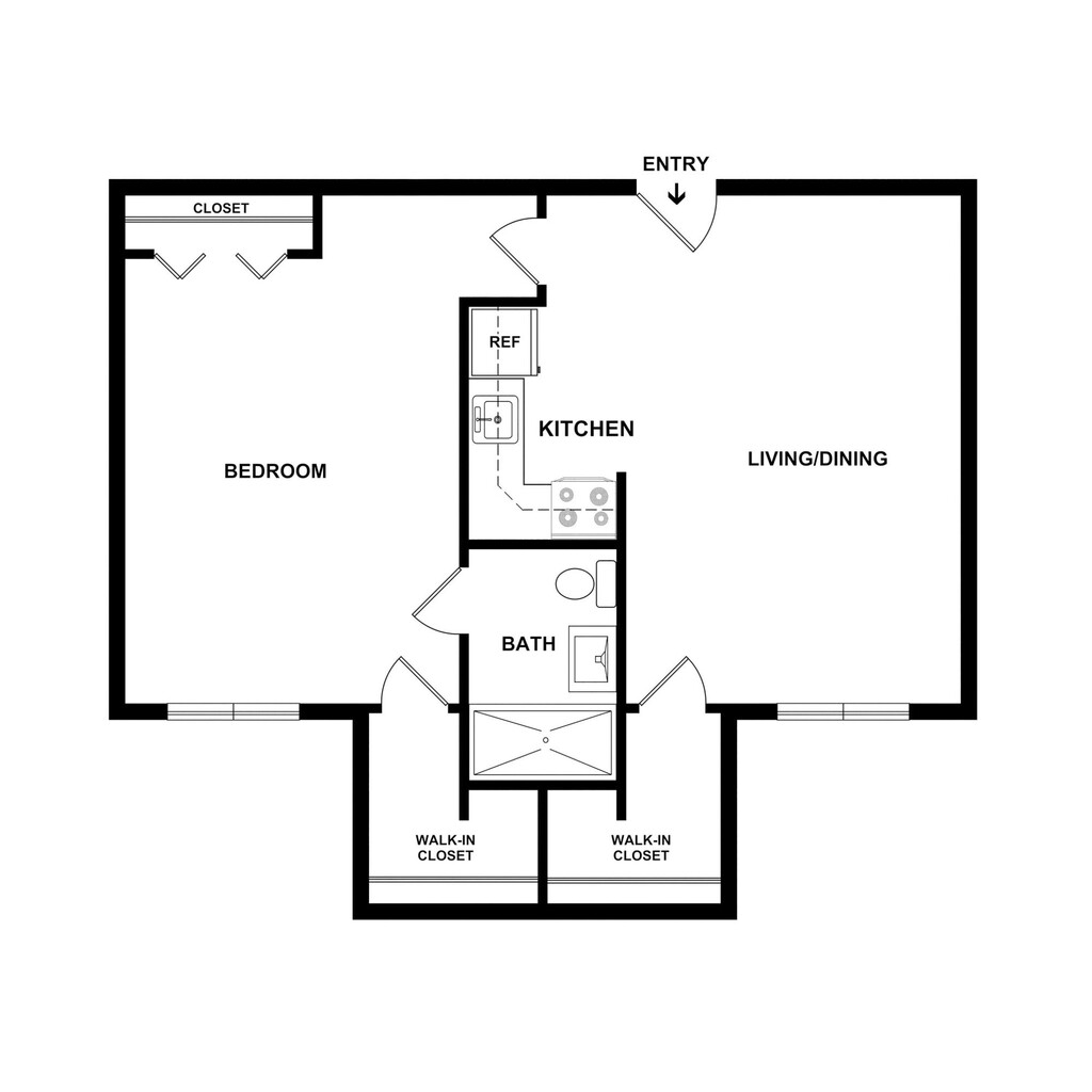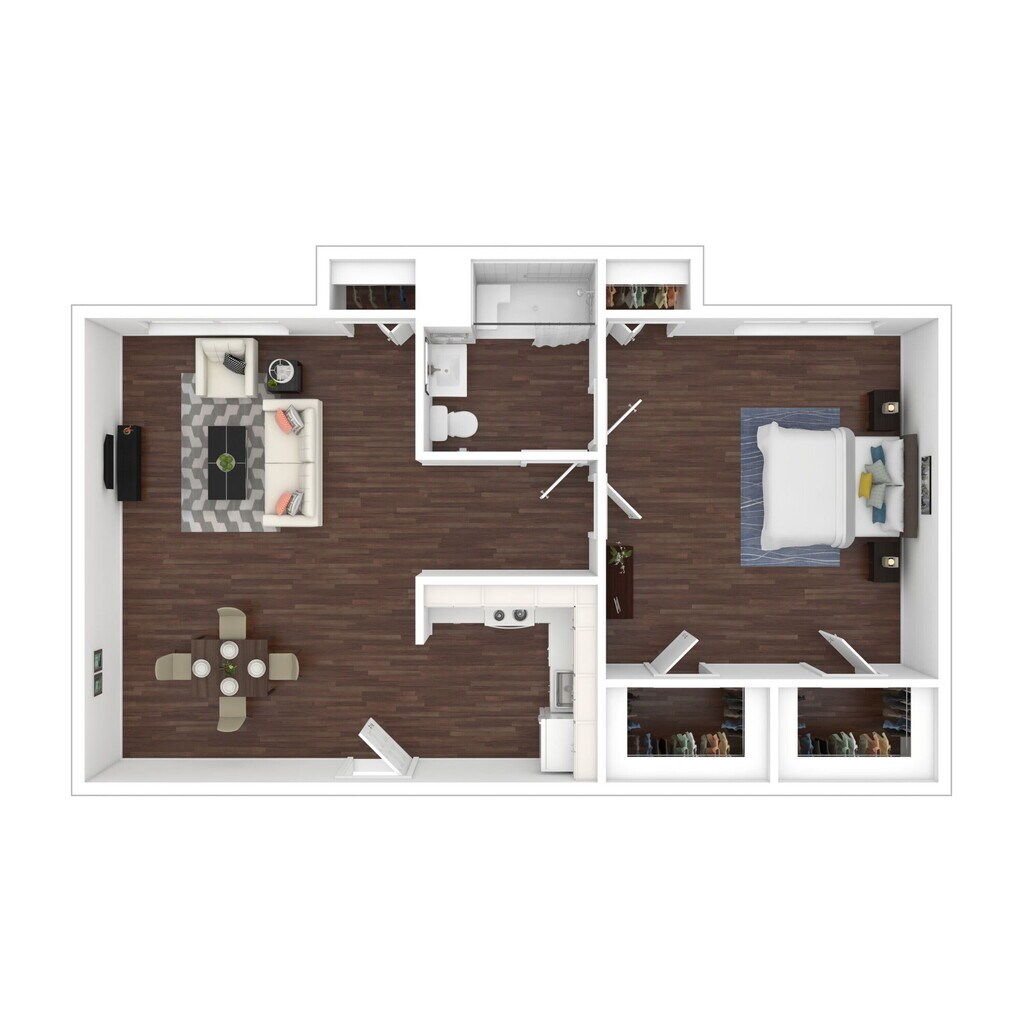 1 Dormitorio, 1 Baño, 560-776 pies²Disponible AhoraGalería del Modelo