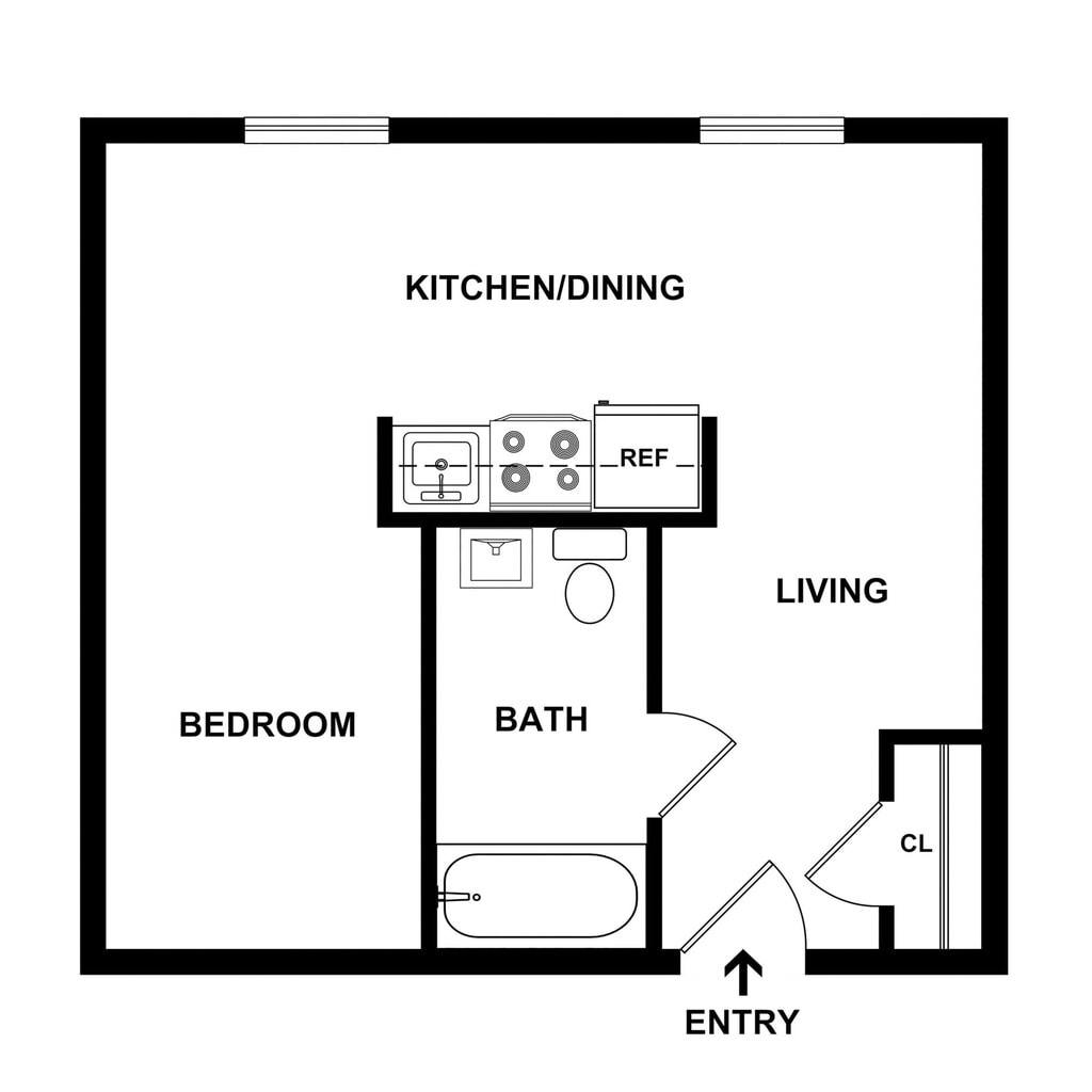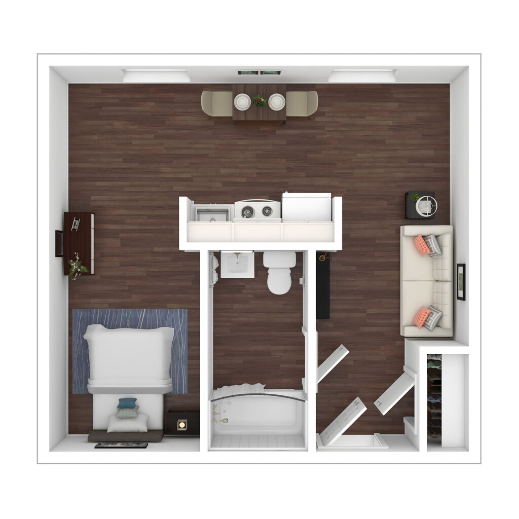 Estudio, 1 Baño, 423-425 pies²Disponible AhoraGalería del Modelo