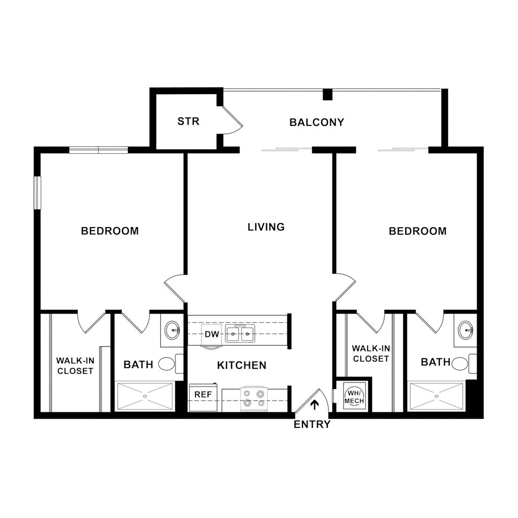 2 Dormitorios, 2 Baños, 840 pies²Galería del Modelo