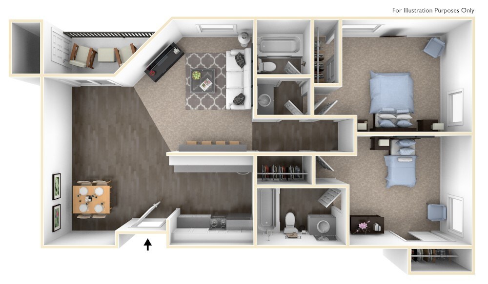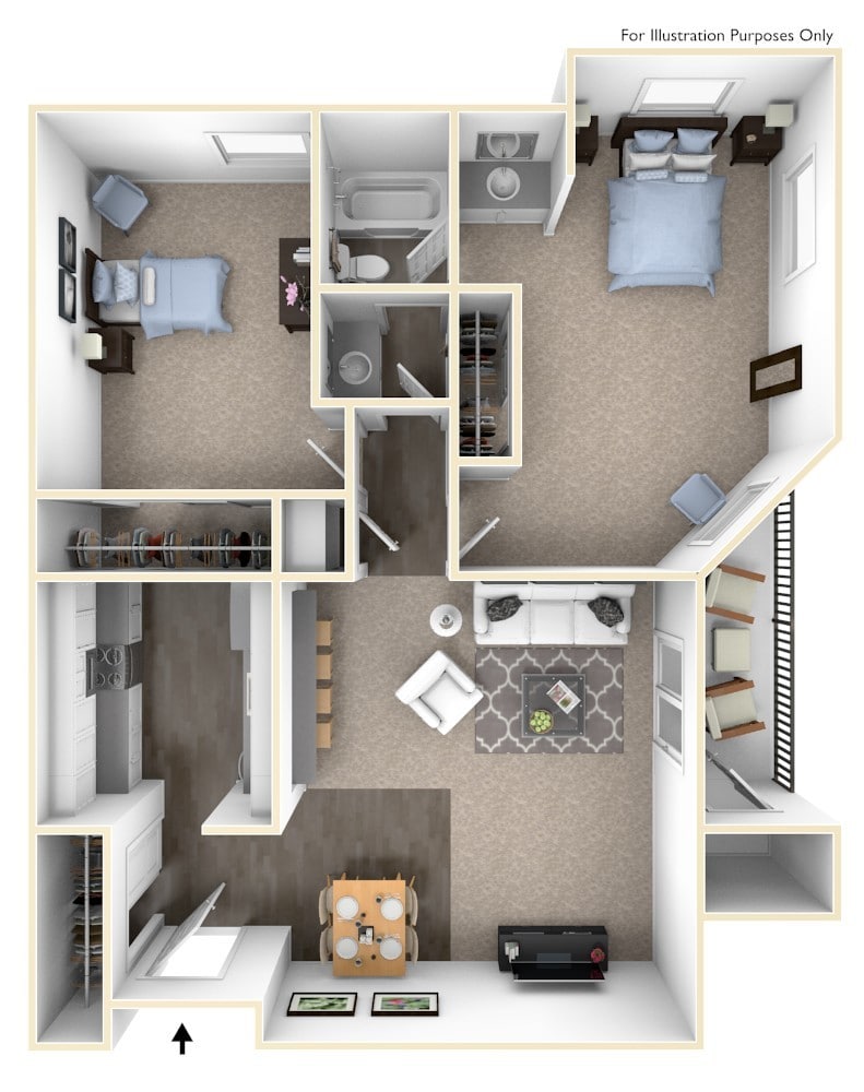 1 Dormitorio, 1 Baño, 676 pies²Disponible AhoraGalería del Modelo