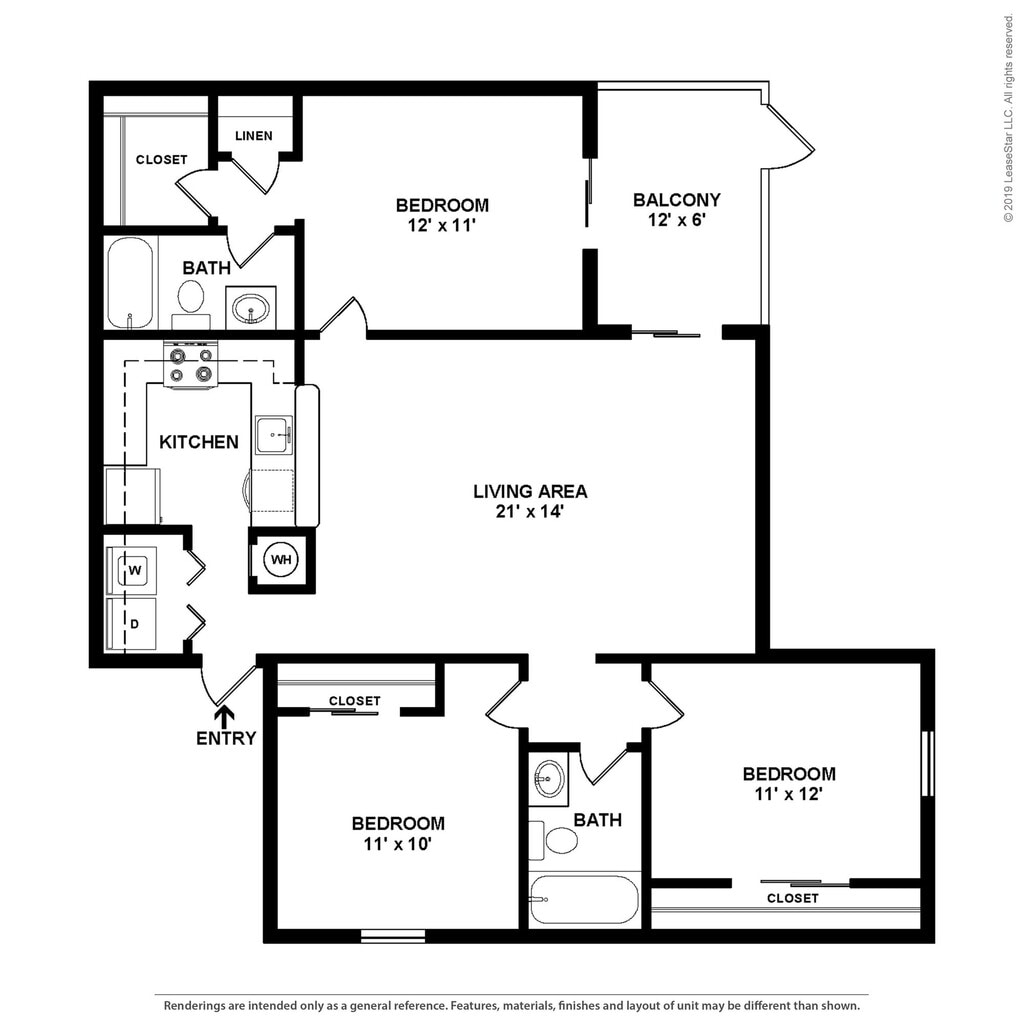 Laurel Oak - Plano 6 Unidad de apartamento: 3Modelo de apartamento: Laurel Oak$2,4203 Dormitorios, 2 Baños, 1185 sq ftDisponible Ahora