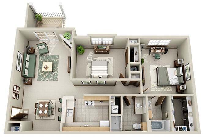 2 Dormitorios, 2 Baños, 1169 pies²Disponible AhoraGalería del Modelo