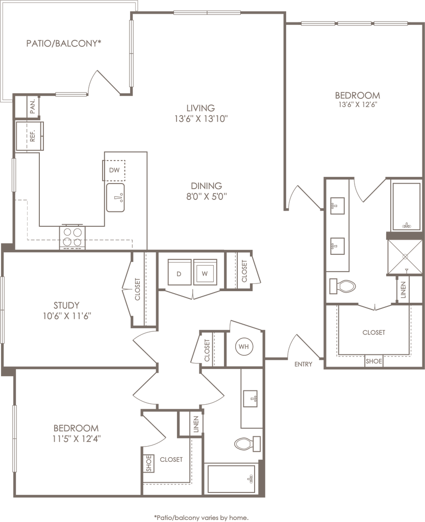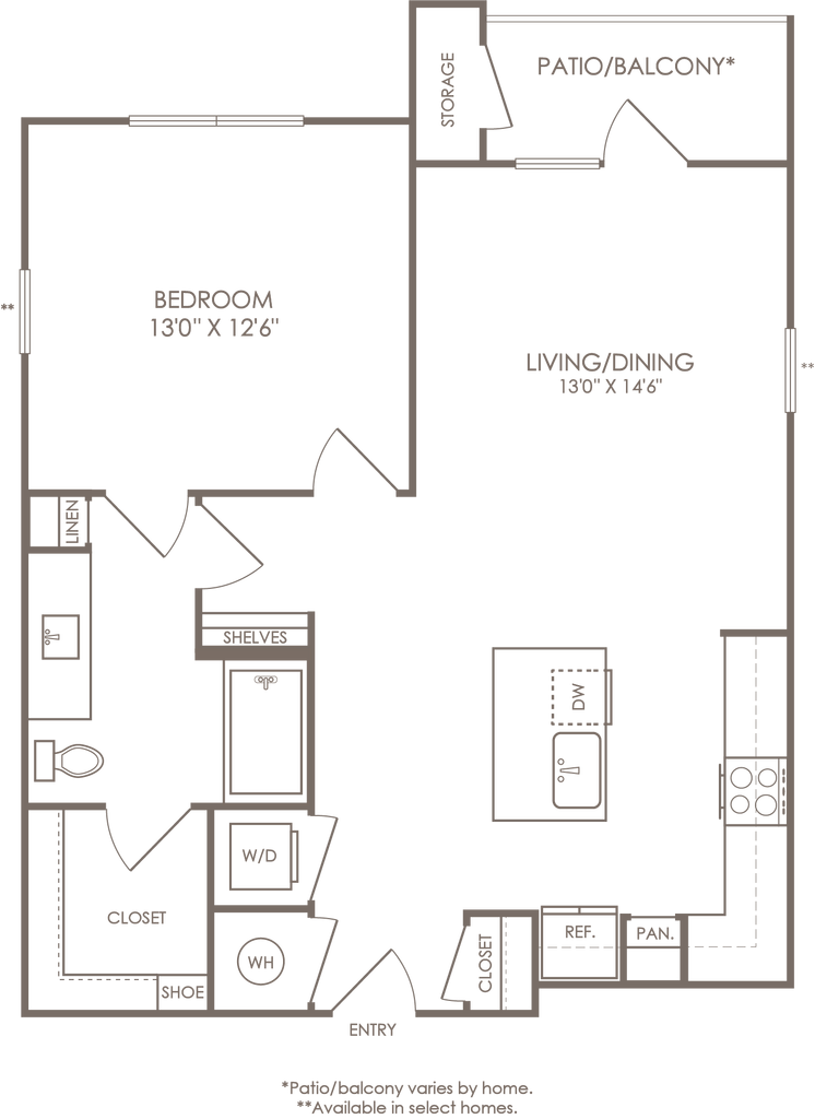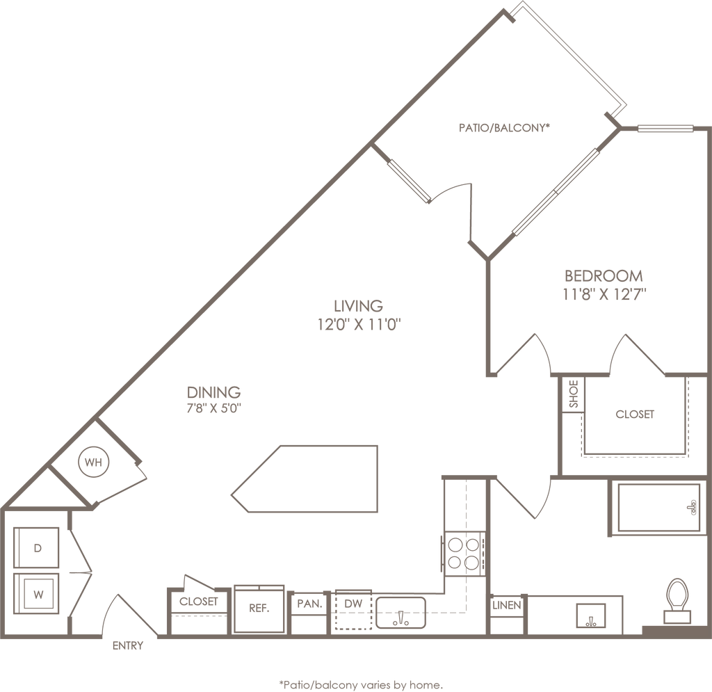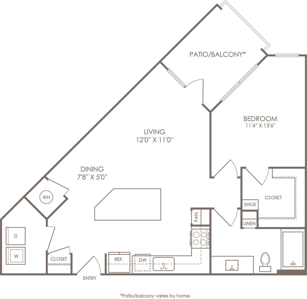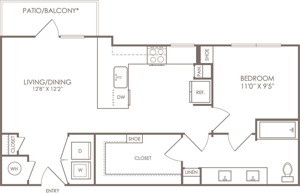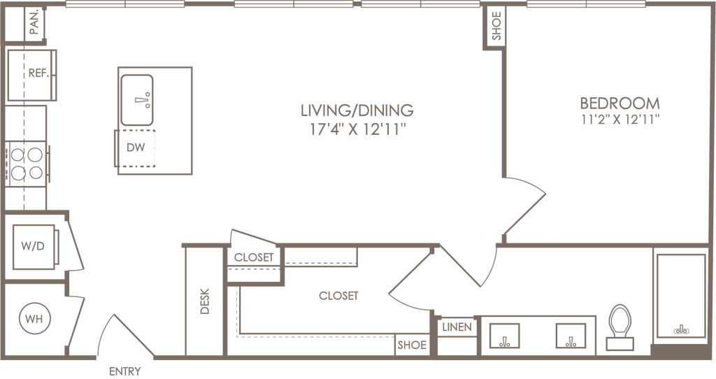 1 Dormitorio, 1 Baño, 614 pies²Disponible AhoraGalería del Modelo