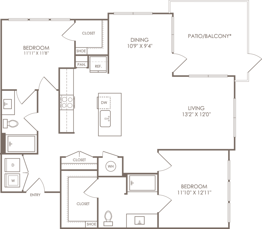 1 Dormitorio, 1 Baño, 707 pies²Disponible AhoraGalería del Modelo