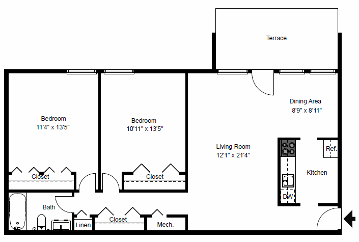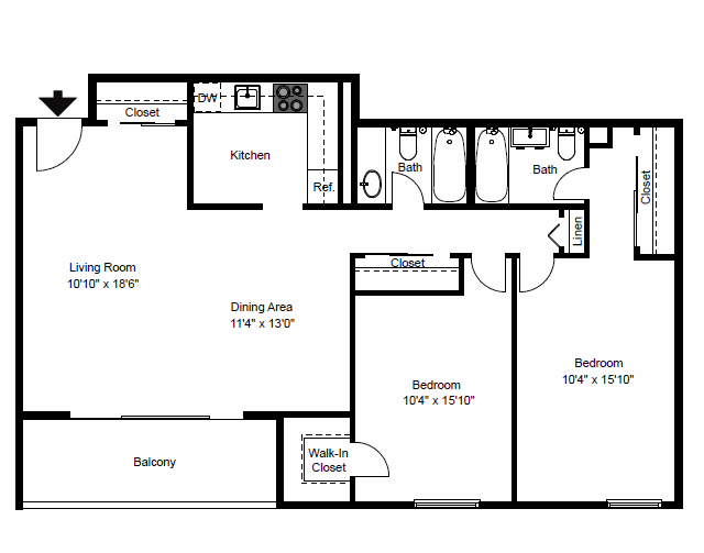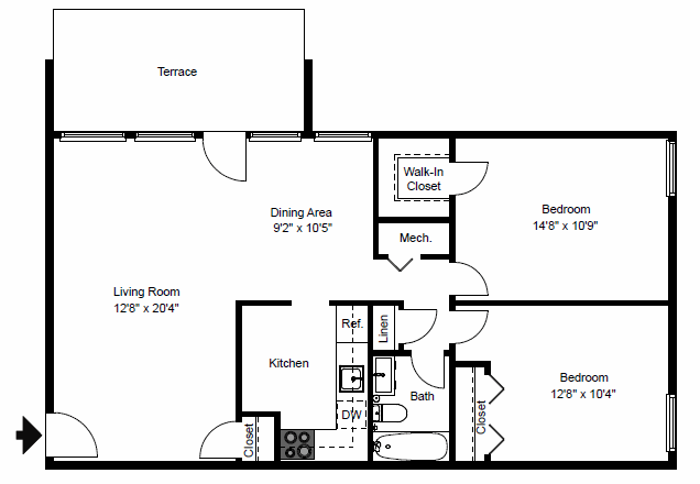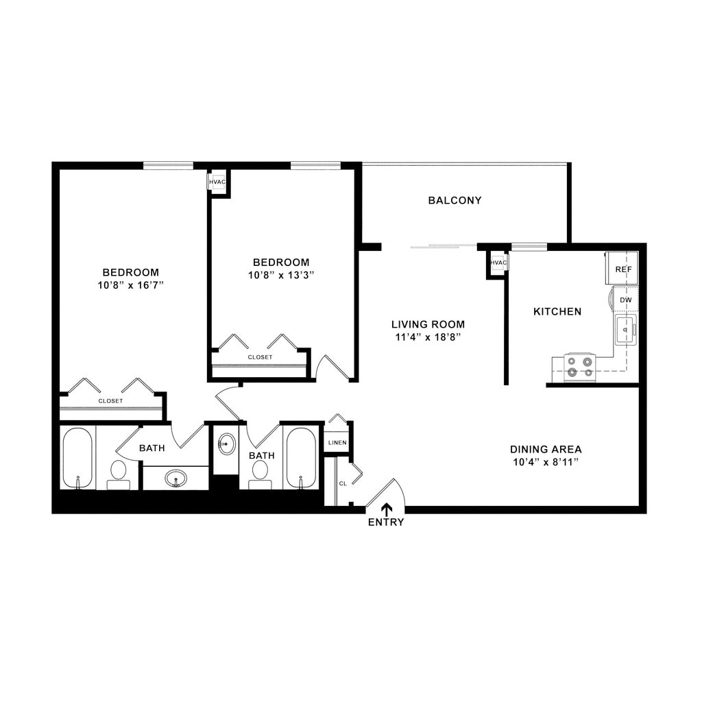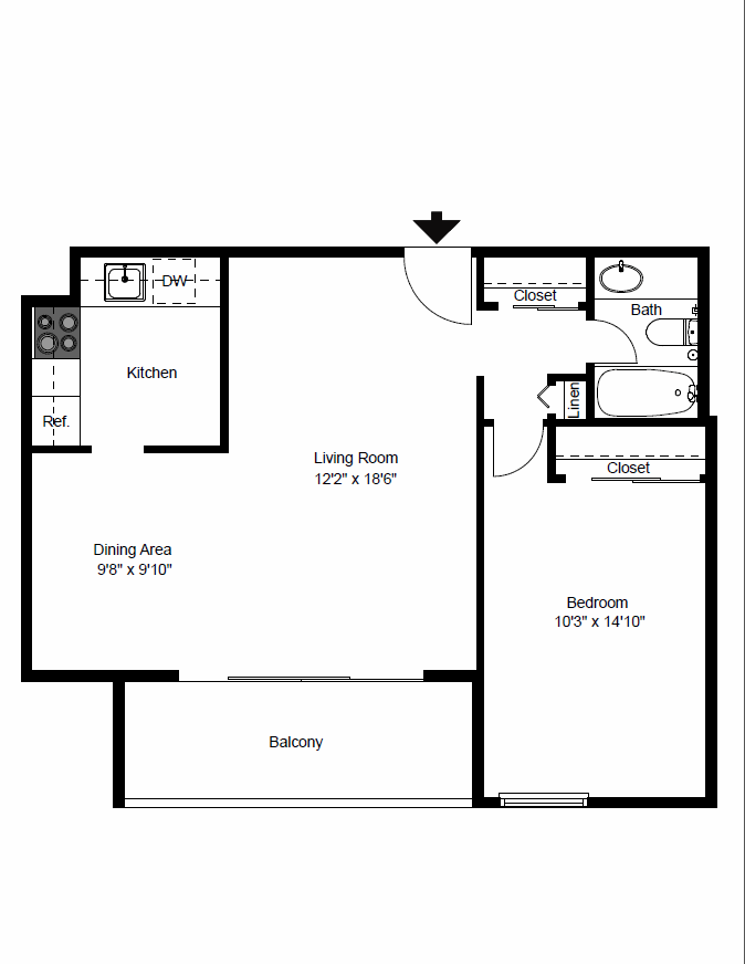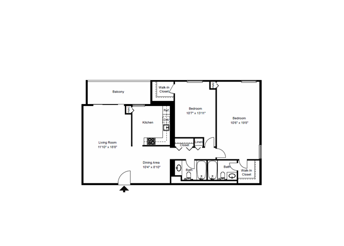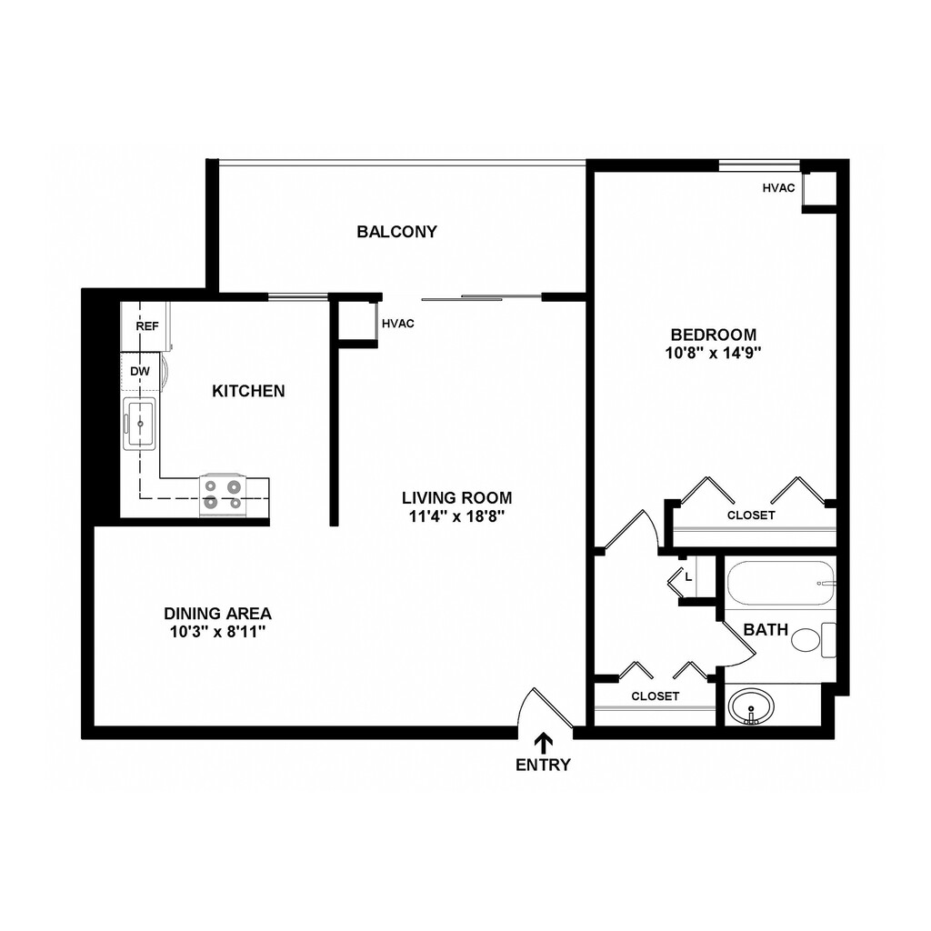 1 Dormitorio, 1 Baño, 660-710 pies²Disponible AhoraEl más grandeEsta opción tiene las unidades más grandes para este modeloGalería del Modelo