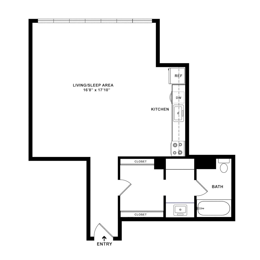 Estudio, 1 Baño, 453-598 pies²Disponible AhoraGalería del Modelo