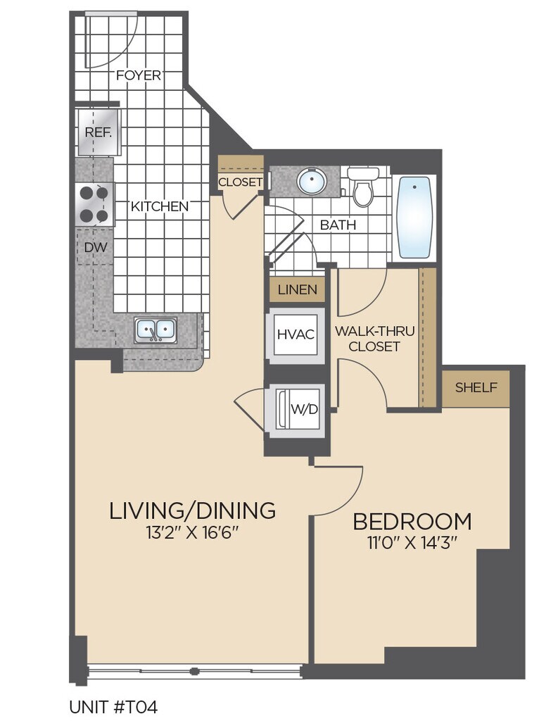 Estudio, 1 Baño, 605 pies²Disponible AhoraGalería del Modelo