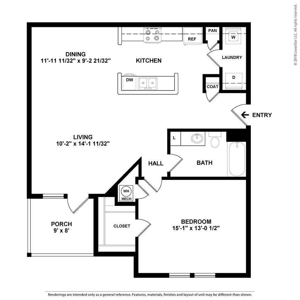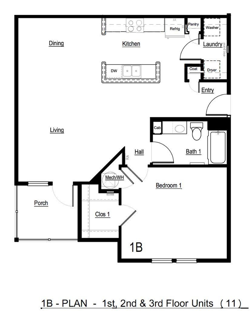 1 Dormitorio, 1 Baño, 951 pies²Galería del Modelo