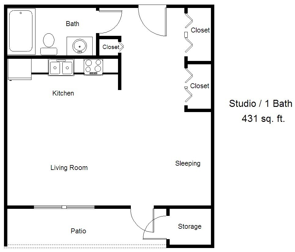 Estudio, 1 Baño, 431 pies²Galería del Modelo