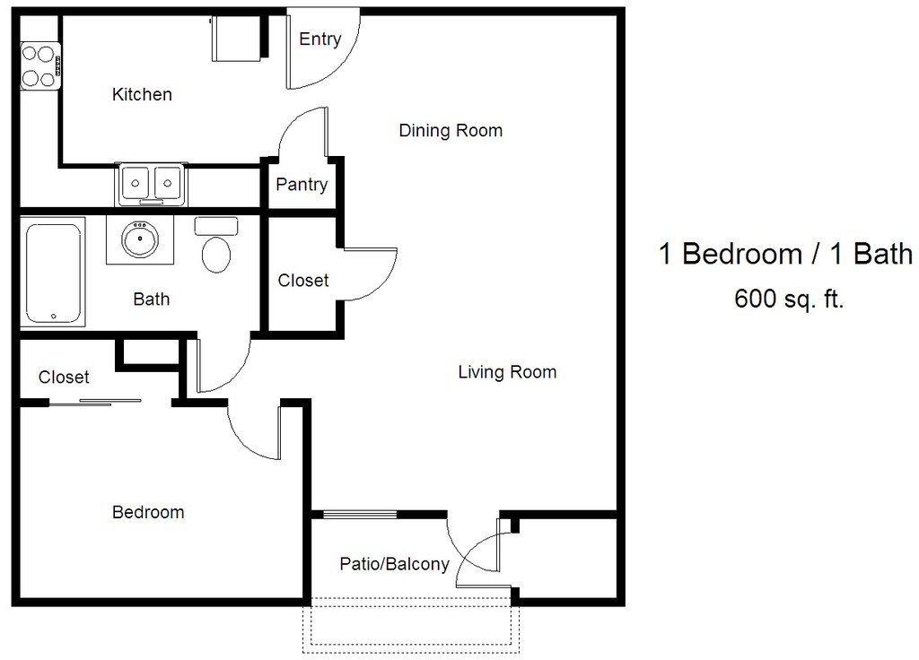 1 Dormitorio, 1 Baño, 600 pies²Galería del Modelo
