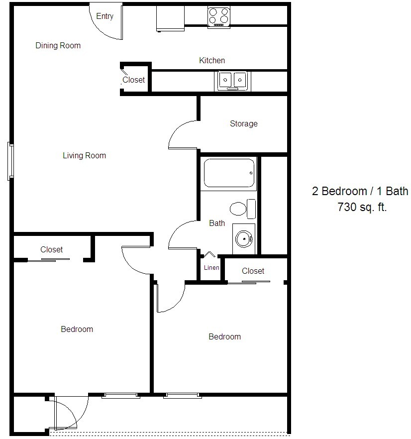 Modelo de apartamento: Two Bedroom2 Dormitorios, 1 Baño, 730 sq ftNo Disponible![]()