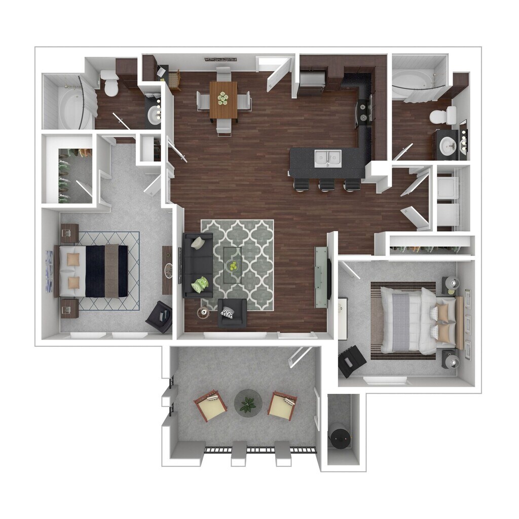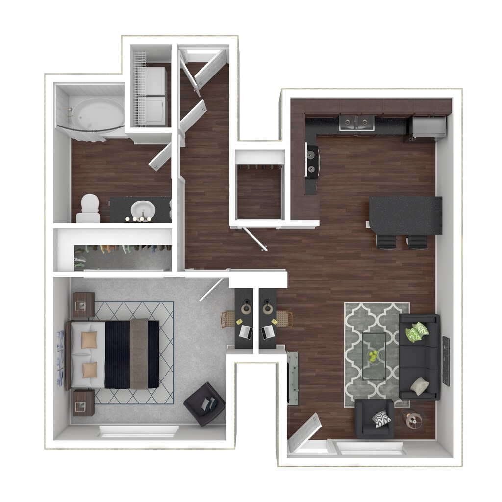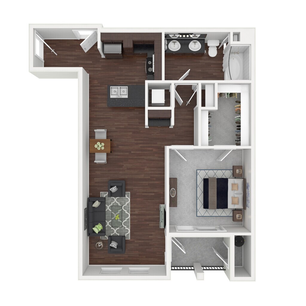 1 Dormitorio, 1 Baño, 762 pies²Disponible AhoraGalería del Modelo