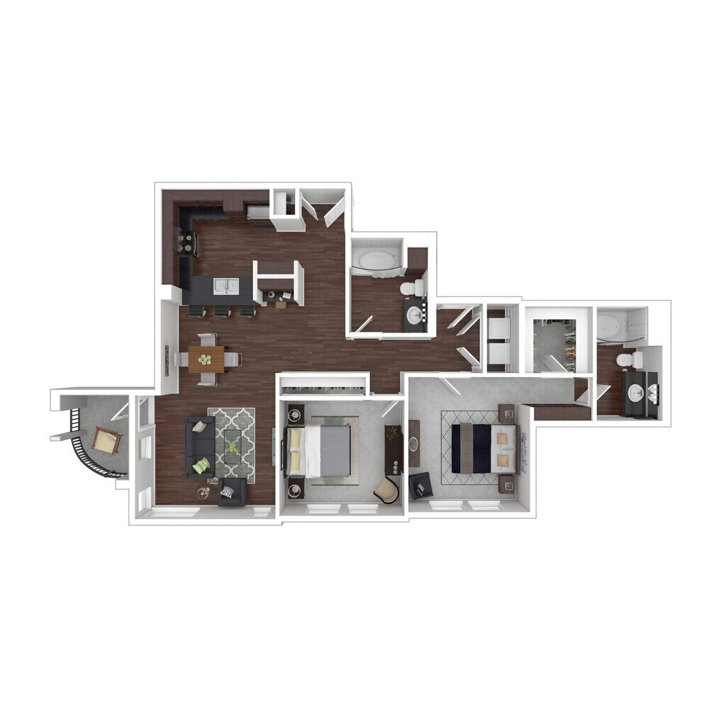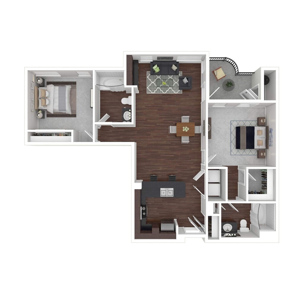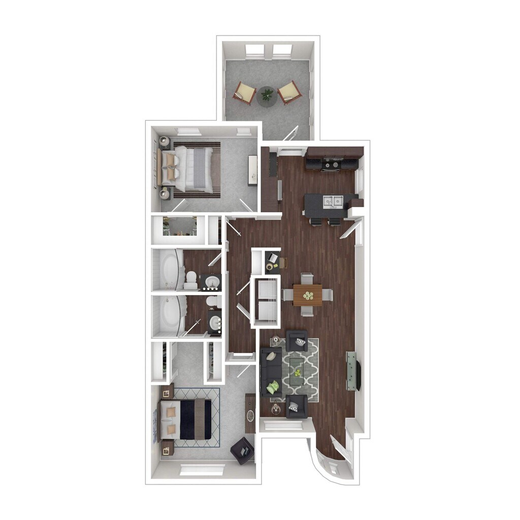 Modelo de apartamento: A9$1,6651 Dormitorio, 1 Baño, 762 sq ftDisponible Ahora![]()