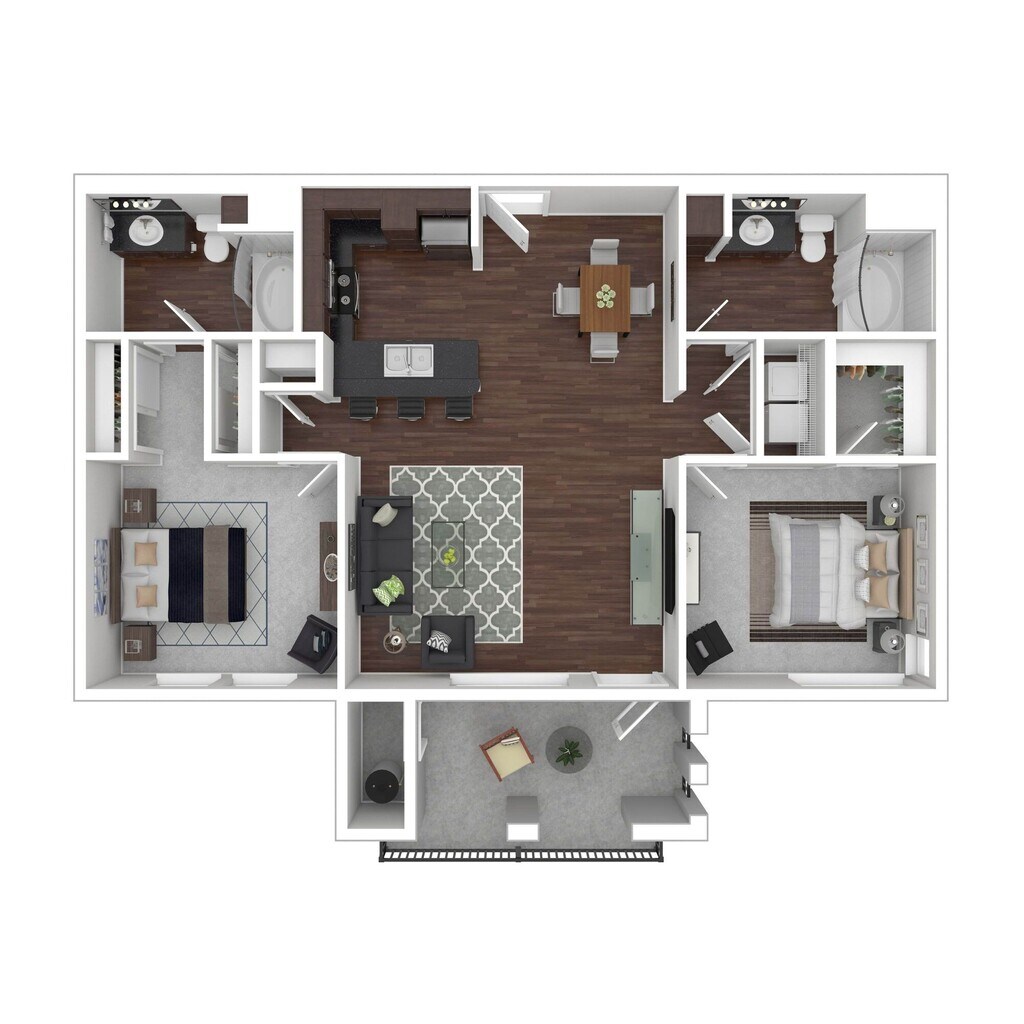 1 Dormitorio, 1 Baño, 832 pies²Disponible AhoraGalería del Modelo