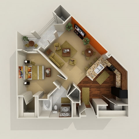 Modelo de apartamento: GoldenrodDesde $1,2951 Dormitorio, 1 Baño, 732 sq ftDisponible AhoraPlanosFotos![]()