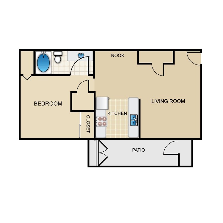 Modelo de apartamento: Unit A1 Dormitorio, 1 Baño, 720 sq ftNo Disponible![]()