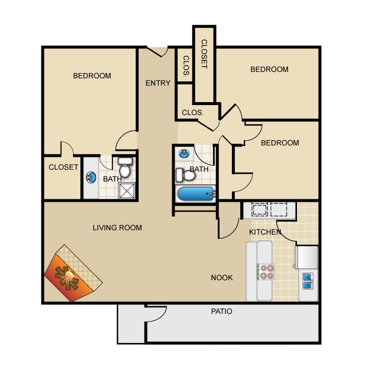 Modelo de apartamento: Unit E3 Dormitorios, 2 Baños, 1444 sq ftNo Disponible![]()