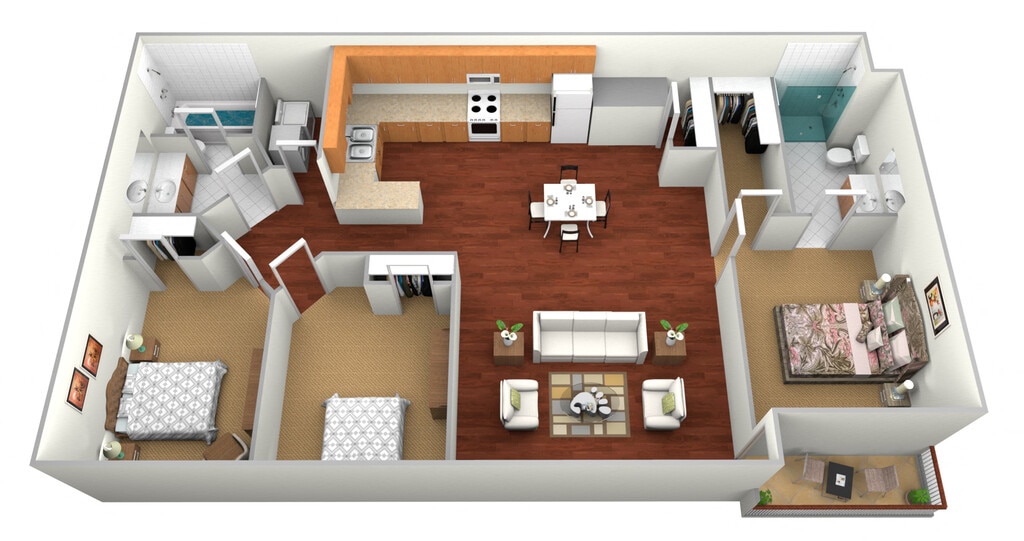 3 Dormitorios, 2 Baños, 1365 pies²Galería del Modelo
