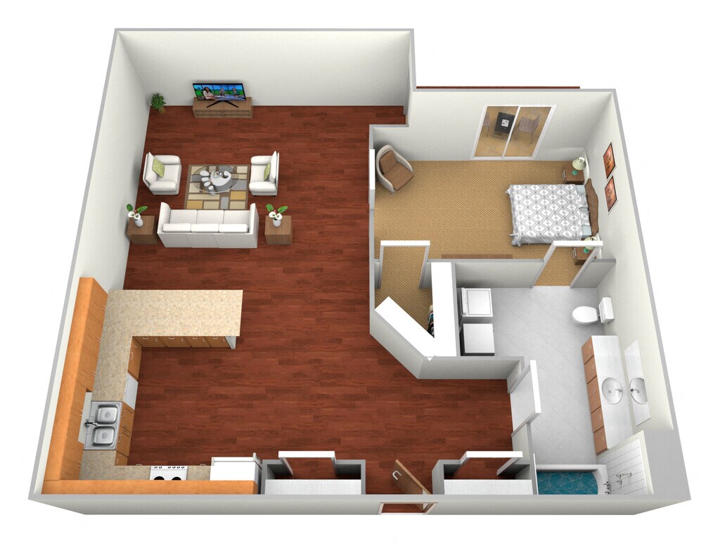 1 Dormitorio, 1 Baño, 730 pies²Disponible AhoraGalería del Modelo