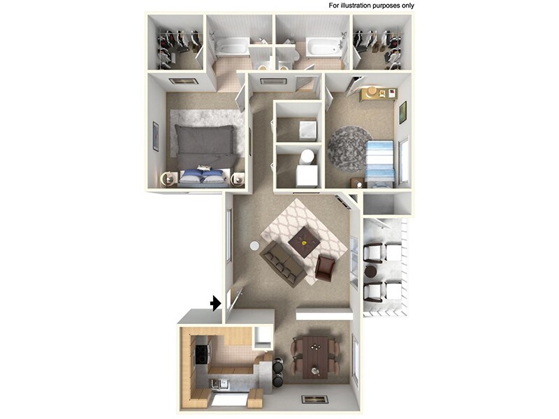1 Dormitorio, 1 Baño, 736 pies²Disponible AhoraEl más grandeEsta opción tiene las unidades más grandes para este modeloGalería del Modelo
