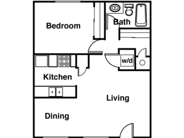 1 Dormitorio, 1 Baño, 650 pies²Disponible AhoraGalería del Modelo