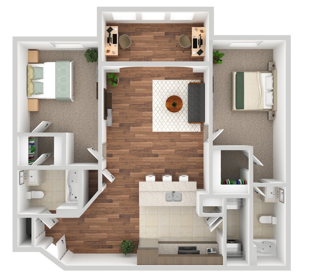 1 Dormitorio, 1 Baño, 745 pies²Disponible AhoraEl más grandeEsta opción tiene las unidades más grandes para este modeloGalería del Modelo