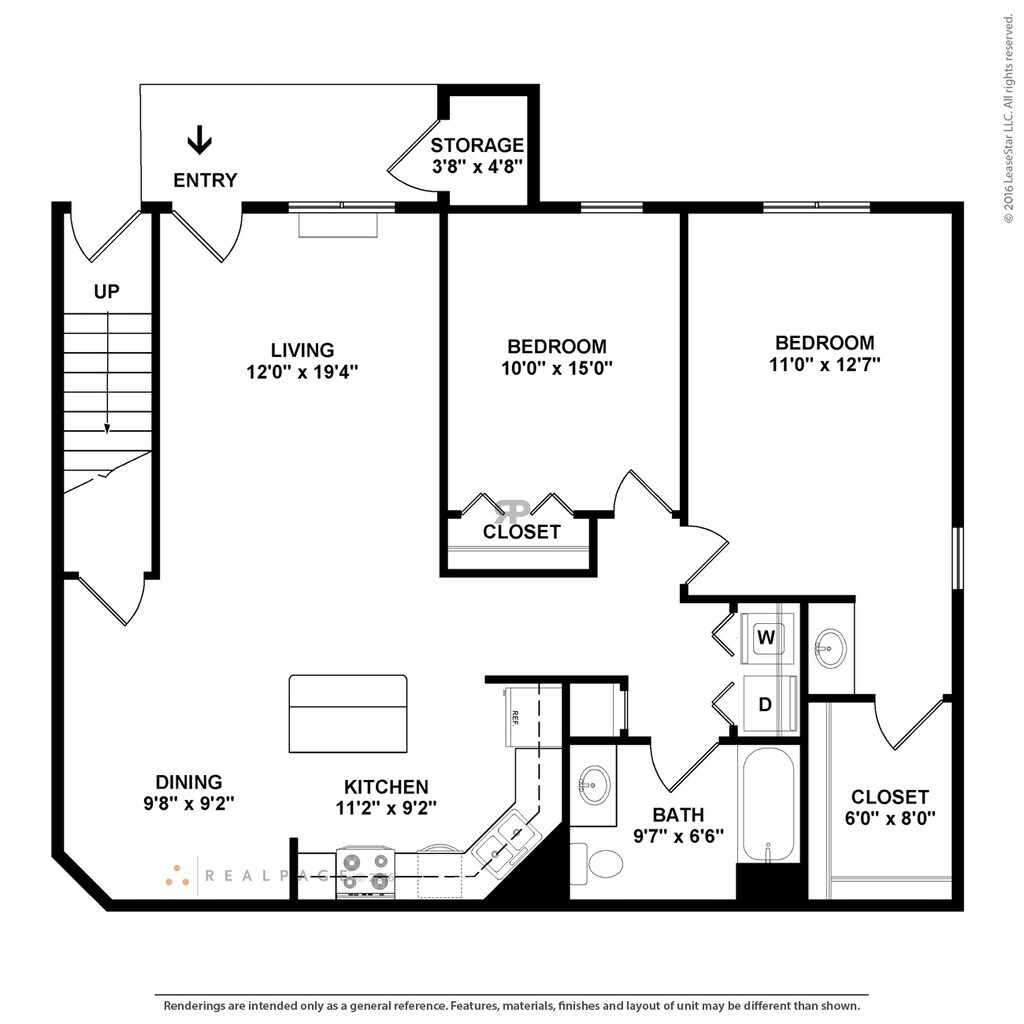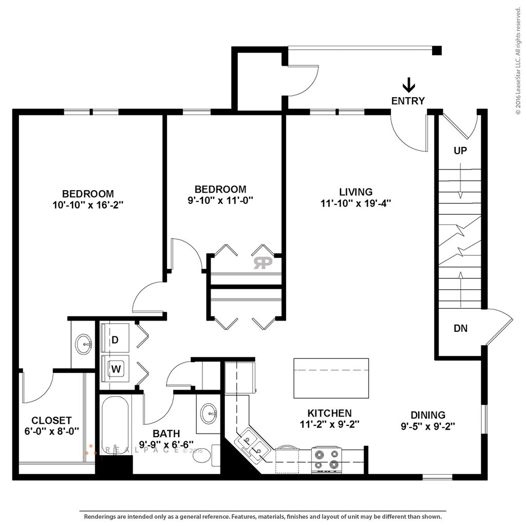 2 Dormitorios, 1 Baño, 1102 pies²Galería del Modelo